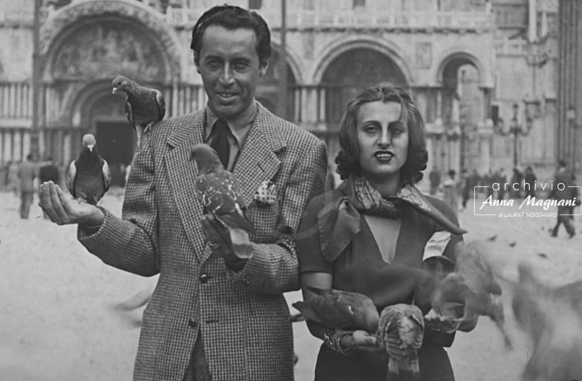 アンナもまたアレッサンドリーニに惚れ込みます。マニャーニのアーカイブには、結婚したふたりがヴェネツィア旅行をしたときの写真のようです。ご覧のようにアレッサンドリーニはすらりとした美男子。もと障害物競争の選手というスポーツマンであり、当時どんどん華やかになってくる映画界のプリンス。ファシズムが映画に力を入れてゆく時代に、比較的体制と近い映画を撮って賞賛されます。