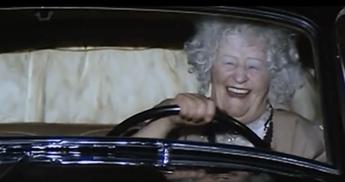 やっととまってくれたのが、年配の貴族の夫人が運転するベントレーのSタイプ。あんたいい男だから乗せて上げるというのだけど、これがまたトロトロ運転。なんとか運転を変わってもらうまでのセリフのやりとりで笑ったら、車をとめて席を変わる二人が重なってしまうところで、通りがかりの車からヤジられる。誤解だよと叫んでも、このご婦人はまんざらでもなさそうなんだよね。